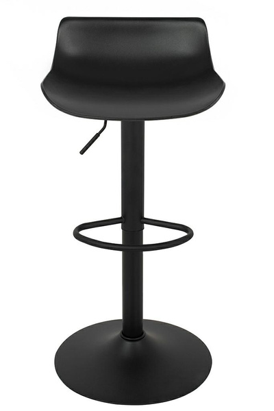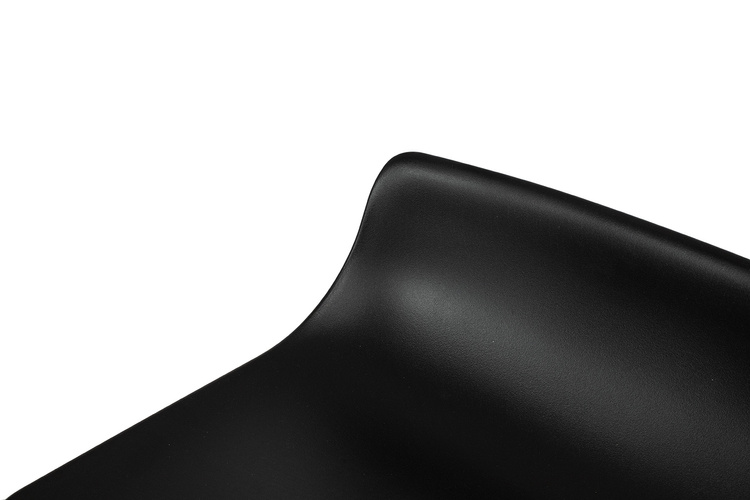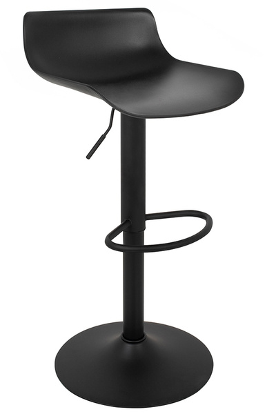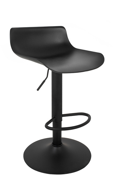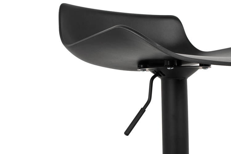 Siedzisko zostało wykonane z tworzywa sztucznego, a postawa z metalu w kolorze czarnym.