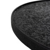 Okrągłe blaty stolików wykończono ciekawą oraz oryginalną teksturą.