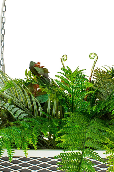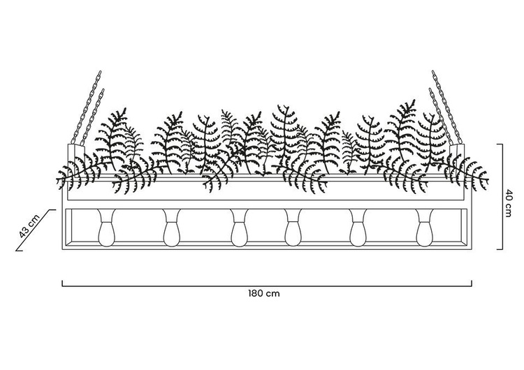 MOOSEE Semira to dzieło sztuki, wprawi w zachwyt najbardziej wymagającego miłośnika designu. Wspaniale ociepli chłodne industrialne wnętrze i doda mu wyjątkowego charakteru. To kreacja układana ręcznie w pracowni florystycznej z wielką starannością i pasją, dzięki czemu każda z lamp jest jedyna w swoim rodzaju. Wszystkie zestawione ze sobą fragmenty układają się w harmonijną całość. Każdy element jest odpowiednio ucinany, dopasowywany, zaczynając od gąbki, po każdą roślinną gałązkę, czy liść. Wysoka jakość i naturalna kolorystyka sprawiają, że rośliny wyglądają jak żywe. Solidna rama przypominająca kwietnik została wykonana niezwykle precyzyjnie ze stali pomalowanej bezbarwnym lakierem. Połączenie surowości metalu i zieleń roślinności tworzy bardzo efektowną całość. Światło: 6 x E27 maks. 40 W (brak w zestawie) Oprawa: wys. 180 cm / szer. 180 cm / gł. 43 cm Klosz: wys : 40 cm / szer. 180 cm / gł. 43 cm Łańcuch: dł. 140 cm Montaż: instalacja sufitowa.
