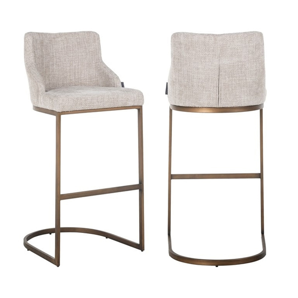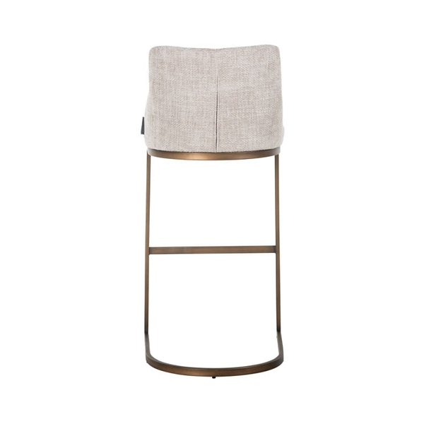 RICHMOND krzesło barowe BOLTON 76. Elegnackie siedzisko tapicerowane tkaniną w odcieniu Renegade Natural 01. Metalowa podstawa wykończona została w szczotkowanym złotym odcieniu. Krzesło barowe Bolton to produkt, który doda stylu do Twojego wnętrza. Dostępne również inne wersje. Wymiary: wys. 103 cm / szer. 48 cm / gł. 51 cm Wysokość do krawędzi siedziska: 76,5 cm Waga netto: 10 kg.