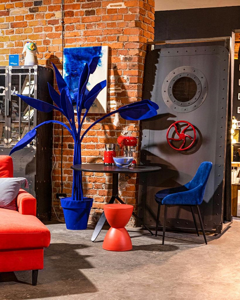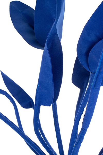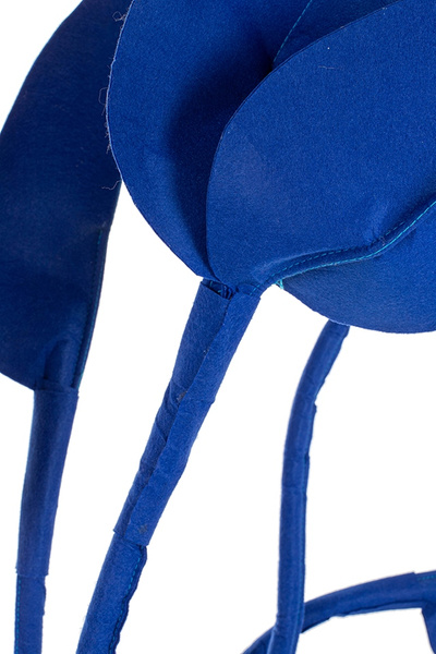 Awangardowa dekoracja filcowa w kolorze kobaltowym.