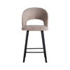 RICHMOND krzesło barowe SAVOY 68 khaki. Savoy marki Richmond Interiors to krzesło barowe o ponadczasowym designie. Kształtne oparcie wykończone jest aksamitną tkaniną welurową w kolorze beżowym/ khaki. Jest to tkanina bardzo uniwersalna i wytrzymała, która na dodatek przepięknie prezentuje się we wnętrzach. Welur jest również bardzo wygodny i miękki w dotyku, co nadaje szykowny i ciepły wygląd. Oparcie i podłokietniki opadają w zaokrąglony kształt dla zwiększenia komfortu siedzenia. Nogi krzesła wykonane są z lakierowanego na czarno drewna i posiadają wbudowany podnóżek. Dostępne różne wersje kolorystyczne + wyższa wersja. Wymiary: wys. 100 cm / szer. 50 cm / gł. 57 cm Wysokość do krawędzi siedziska: 68 cm Waga netto: 10 kg.