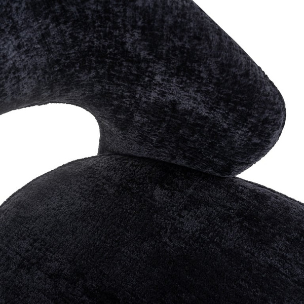 RICHMOND krzesło SAVOY czarne. Savoy marki Richmond Interiors to krzesło o ponadczasowym designie. Kształtne oparcie tapicerowane jest szenilem o nazwie Bergen 809 w kolorze czarnym. Tkanina szenilowa jest bardzo łatwa w utrzymaniu czystości. Ponadto cechuje ją piękny połysk, a włókna sprawiają, że w każdym świetle wygląda inaczej. Szenil jest również bardzo wygodny i miękki w dotyku, co nadaje szykowny i ciepły wygląd. Oparcie i podłokietniki opadają w zaokrąglony kształt dla zwiększenia komfortu siedzenia. Nogi krzesła wykonane są z lakierowanego na czarno drewna. Dostępne różne wersje kolorystyczne + krzesła barowe. Wymiary: wys. 82 cm / szer. 54 cm / gł. 50 cm Wysokość do krawędzi siedziska: 49 cm Waga netto: 9,2 kg.