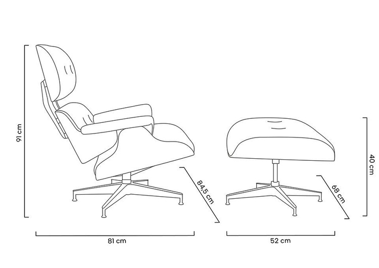 Fotel LOUNGE HM XL czarny / orzech z podnóżkiem. Seria Lounge to tradycyjny oraz ponadczasowy model, który doskonale sprawdzi się w szykownym biurze czy salonie. Cały fotel wraz z podnóżkiem wykonano z naturalnej włoskiej skóry w kolorze czarnym. Zarówno korpus fotela jak i podnóżek zdobi drewno w kolorze orzechowym. Podstawy oraz elementy metalowe wykonane zostały ze stali, malowanej proszkowo na kolor czarny matowy. Dla podkreślenia elegancji, obie podstawy oraz łączenia oparcia w fotelu są dodatkowo spolerowane na wierzchniej stronie. Fotel oraz podnóżek posiadają funkcję obrotową. Dzięki swoim podwyższonym wymiarom ten zestaw, zapewni jeszcze większy komfort pracy oraz relaksu. Wymiary: wys. 91 cm / szer. 84,5 cm / gł. 81 cm Wysokość do krawędzi siedziska: 39 cm Siedzisko: szer. 64 cm / gł. 50 cm Wysokość do podłokietników: 51 cm Podłokietniki: szer. 15 cm / dł. 35 cm Oparcie: wys. 71 cm / szer. 63 cm Waga netto: 36 kg Sposób wysyłki: paleta.