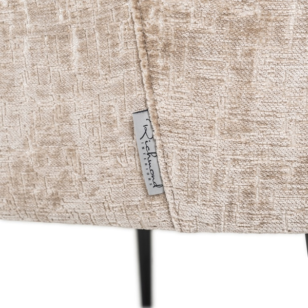 Wygodne siedzisko jest tapicerowane beżową tkaniną o nazwie Shitake Island 124.