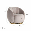 Piękne siedzisko tapicerowano wysokiej jakości tkaniną welurową w eleganckim, beżowym odcieniu i oparto na okrągłej, szczotkowanej złotej podstawie obrotowej.