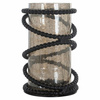 Cylindryczne szkło zostało otoczone łańcuchem czarnych aluminiowych koralików.