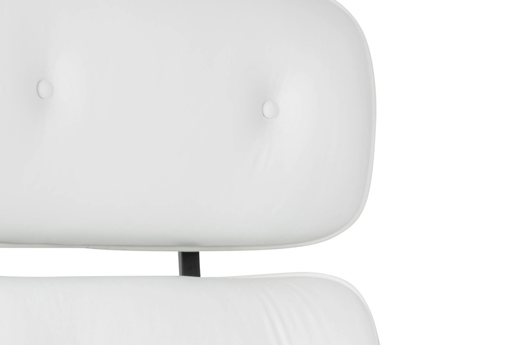 Siedzisko, oparcie oraz podłokietniki tapicerowane są naturalną włoską skórą w kolorze białym.