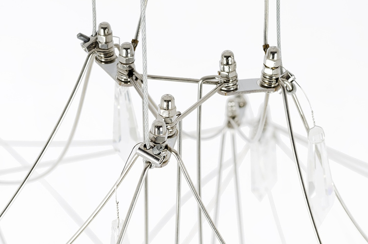 Metalowa pajęczyna, połączona z ledowymi źródłami światła tworzy wyjątkowo elegancką konstrukcję.