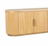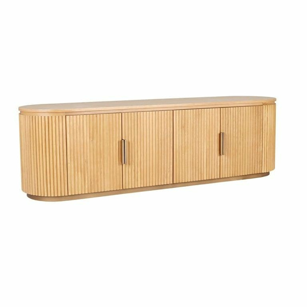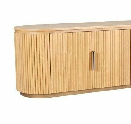 Za drzwiczkami zdobionymi szykownymi lamelami dębowymi kryją się obszerne półki, idealne do przechowywania akcesorii telewizyjnych.