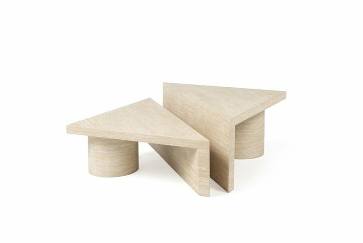 Nowoczesna, minimalistyczna forma stolików została wykonana z imitacji kamienia Trawertyn.