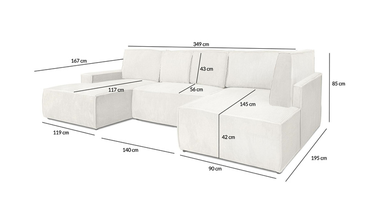 Wymiary: wys. 85 cm / szer. 349 cm / gł. 195 cm