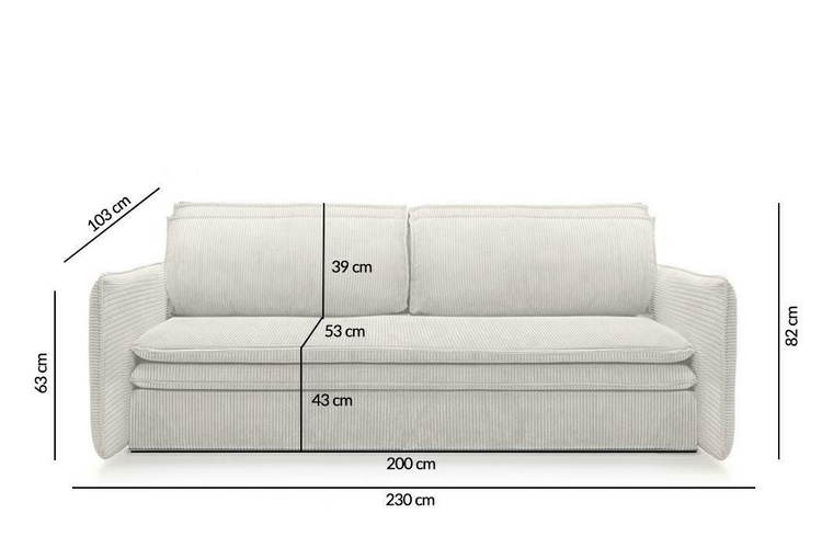 Wymiary: wys. 82 cm / szer. 230 cm / gł. 103 cm