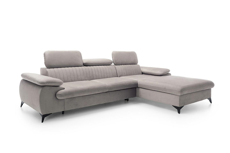 Oryginalna sofa narożna, wyprodukowana w Polsce. Siedzisko oraz oparcie wykonano ze sprężyny falistej oraz pianki PUR, która zapewnia najwyższą trwałość oraz wygodę. Możliwość wyboru tkaniny umożliwia w pełni dopasowanie sofy do swoich preferencji oraz wystroju wnętrza. Praktycznym rozwiązaniem jest funkcja spania, która pozwala w razie potrzeby łatwo sofę przekształcić w wygodne łóżko podczas odwiedzin gości lub gdy potrzebujemy dodatkowego miejsca do spania. Regulacja zagłówków gwarantuje optymalne wsparcie dla kręgosłupa i zwiększa komfort podczas relaksu. Dodatkowym atutem jest wbudowany pojemnik, który pozwala na codzienne utrzymanie porządku oraz przechowywanie pościeli. Harold to idealna propozycja dla osób poszukujących nie tylko wygody, ale także estetyki w swoim wnętrzu. *Podczas składania zamówienia prosimy wskazać preferowaną tkaninę oraz stronę narożną prawą lub lewą. Wymiary: wys. 95 cm / szer. 280 cm / gł. 103 cm Wysokość do krawędzi siedziska: 42 cm.