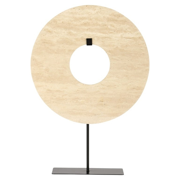 Piękną, okrągłą figurkę wykonano z kamienia o beżowej tonacji.