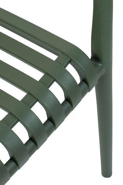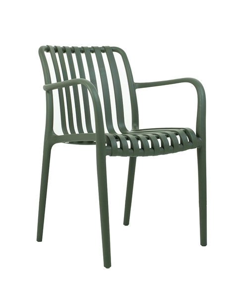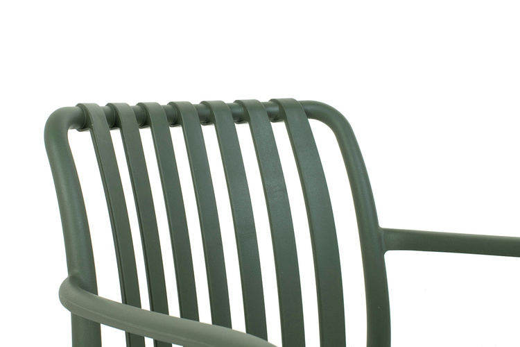 MODESTO krzesło STRIPS ARM zielone. Nowoczesny, minimalistyczny styl, który sprawdzi się w wielu wnętrzach. Ciekawy, a zarazem prosty kształt wykonano z polipropylenu i wykończono w eleganckiej zgaszonej zieleni. Krzesło Strips to produkt wpisujący się w najnowsze trendy wnętrzarskie. Dużym atutem jest, że może być stosowane zarówno do użytku zewnętrznego i wewnętrznego. Dostępna także beżowa oraz czarna wersja. Wymiary: wys. 80 cm / szer. 56 cm / gł. 60 cm Wysokość do krawędzi siedziska: 46 cm Siedzisko: szer. 41 cm / gł. 42 cm Oparcie: wys. 45 cm / szer. 42 cm Wysokość do podłokietników: 67 cm Rozstaw nóg: szer. 51cm / gł. 49 cm.