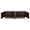 Za otwieranymi drzwiczkami znajdują się cztery obszerne półki, idealne do przechowywania sprzętu telewizyjnego.