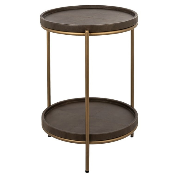 RICHMOND stolik ZILLON brązowy. Niesamowita seria mebli, która wyróżnia się oryginalną stylistyką i nowatorskim designem. Łącząc współczesny luksus z unikalnym wzornictwem, kolekcja ta stanowi doskonały przykład nowoczesnej elegancji. Całość wykonano w wyniku połączenia MDF, brązowej skóry oraz metalowych złotych detali. Każdy element kolekcji Zillon zachwyca swoją wyrafinowaną estetyką i funkcjonalnością, dlatego warto zapoznać się z całą serią, aby odkryć pełnię jej wyjątkowości i luksusu. Wymiary: wys. 61 cm / szer. 45 cm / gł. 45 cm. Waga brutto: 9 kg.