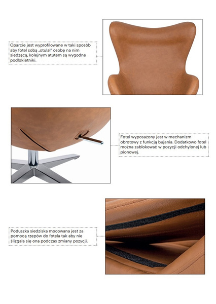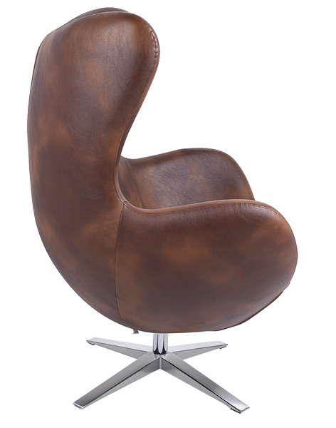 Fotel EGG SZEROKI PU brąz vintage koniak - podstawa stal.