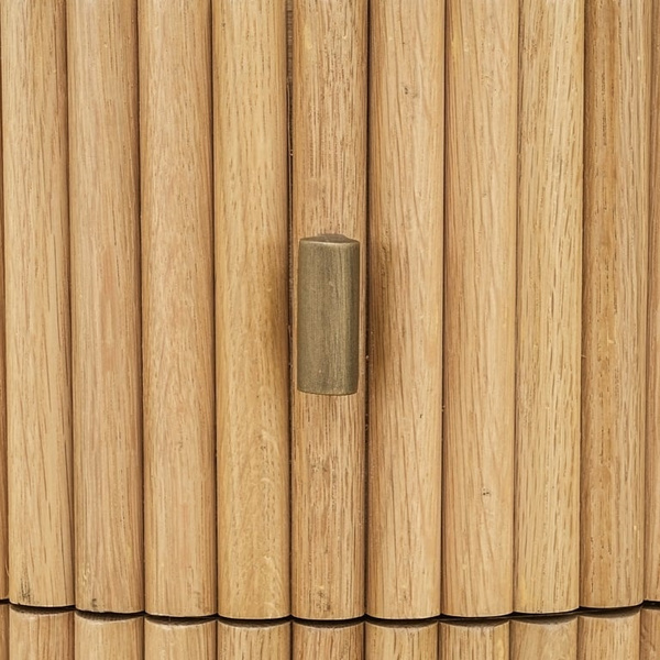 Podstawę zdobią szykowne lamele z forniru dębowego, które cały czas królują w trendach wnętrzarskich.