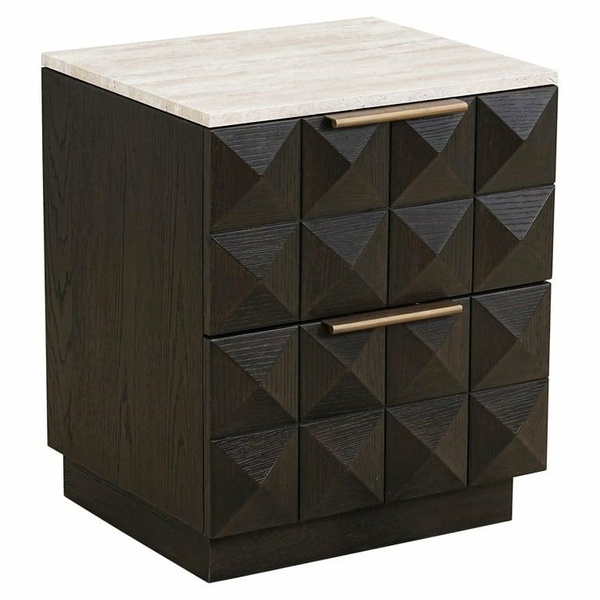 Kolekcja meblowa Claremont to prawdziwa uczta dla zmysłów, łącząca elegancję ciemnobrązowego dębu z efektownymi powierzchniami z trawertynu.