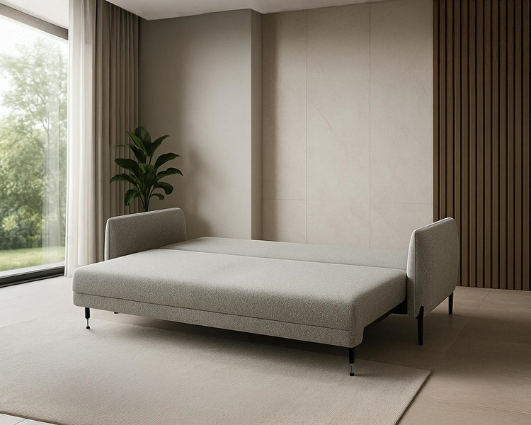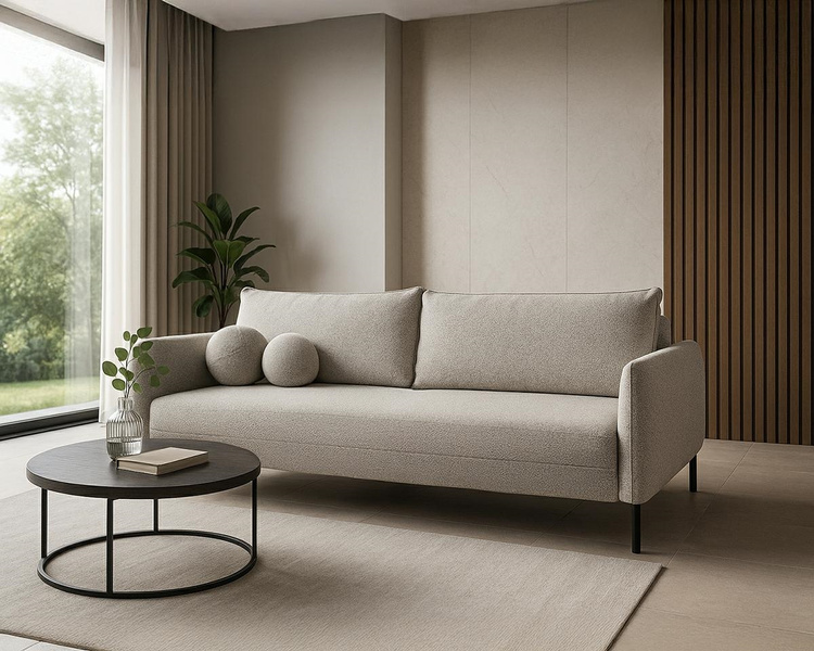 Sofa Aurora z funkcją spania to esencja luksusu, subtelności i nowoczesnej elegancji. Prosta, ale wyrafinowana forma idealnie wpasowuje się w każde wnętrze, gdzie estetyka i harmonia są na pierwszym miejscu. Wyposażona w sprężyny faliste zarówno w siedzisku, jak i oparciu oraz wysokoelastyczną piankę, zapewnia najwyższy komfort użytkowania oraz trwałość. Mechanizm rozkładania typu DL oraz pojemnik na pościel dodają funkcjonalności oraz w łatwy sposób przekształcają dzienną sofę w wygodne miejsce do spania. Minimalistyczna podstawa na nóżkach podkreśla nowoczesny charakter. Sofa Aurora to nie tylko praktyczny, ale i stylowy element salonu który z pewnością pokochasz. Możliwość personalizacji tkaniny pozwala na dopasowanie sofy do indywidualnych preferencji. W zestawie znajdują się dwie okrągłe poduszki dekoracyjne. Wymiary: wys. 90 cm / szer. 234 cm / gł. 100 cm Wysokość do krawędzi siedziska: 44 cm Powierzchnia spania: 200 x 146 cm.
