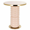 Blat stolika jest ozdobiony złotą krawędzią, co dodaje całości elegancji i wyrafinowanego sznytu.