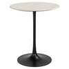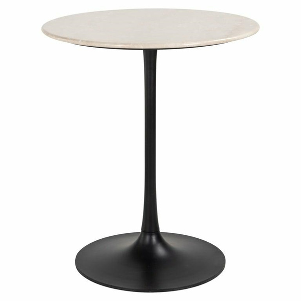 Podstawa stolika jest wykonana z czarnego metalu, w kształcie tulipanowym, co nadaje całości nowoczesnego charakteru.