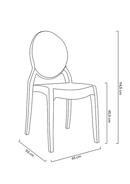 Krzesło Elizabeth w całości zostało wykonane z wysokiej jakości transparentnego poliwęglanu. Poliwęglan jest wysoce odpornym na zarysowania oraz promienie UV tworzywem sztucznym. Dzięki czemu, krzesło można użytkować wewnątrz jak i na zewnątrz budynku. W przypadku odbioru własnym kurierem doliczana jest opłata 15 zł za karton. Wymiary: wys. 94,5 cm / szer. 43 cm / gł. 53 cm Wysokość do krawędzi siedziska: 45,5 cm Siedzisko: szer. 42 cm / gł. 46 cm Oparcie: wys. 50 cm / szer. 37 cm Rozstaw nóg: szer. 46 cm / gł. 51 cm Możliwość sztaplowania: tak Maksymalne obciążenie: do 120 kg Waga netto: 4 kg Wymiary opakowania: 47 cm / 69 cm / 110 cm.