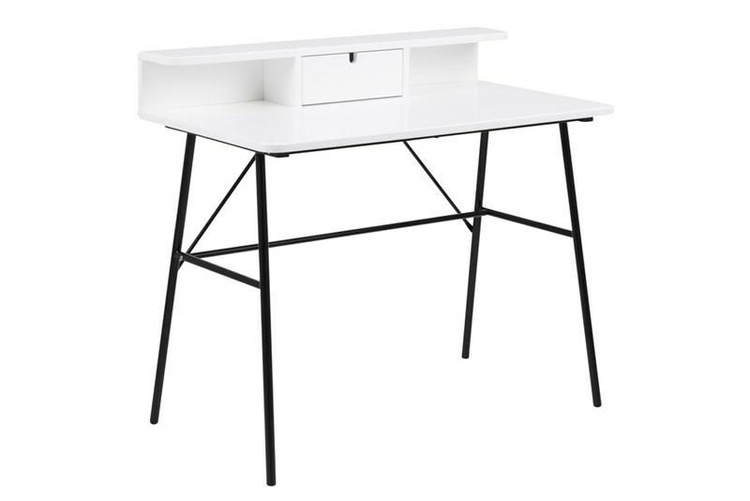 Biurko Pascal od duńskiej marki ACTONA. Blat i korpus wykonane zostały z MDF-u w kolorze białym. Nogi i stelaż w całości wykonano z metalu lakierowanego na kolor czarny. Biurko w klasycznym skandynawskim stylu, które będzie praktycznym dodatkiem do wnętrza. Szuflada ukryta w nadstawce, zapewnia miejsce do przechowywania potrzebnych droiazgów. Wymiary: wys. 88,8 cm / szer. 100 cm / gł. 55 cm Waga netto: 19 kg Sposób wysyłki: paleta.