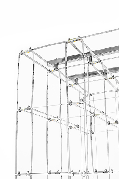 Całość wyglądem przypomina klatkę której połączenia to Ledowe źródła światła.