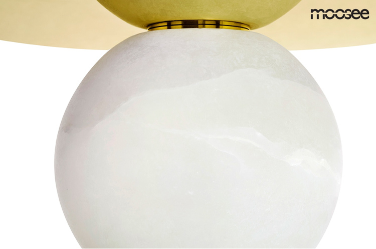 Wykonana została z połączenia stali nierdzewnej w złotym kolorze i kulistego klosza wykonanego z alabastru.