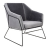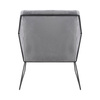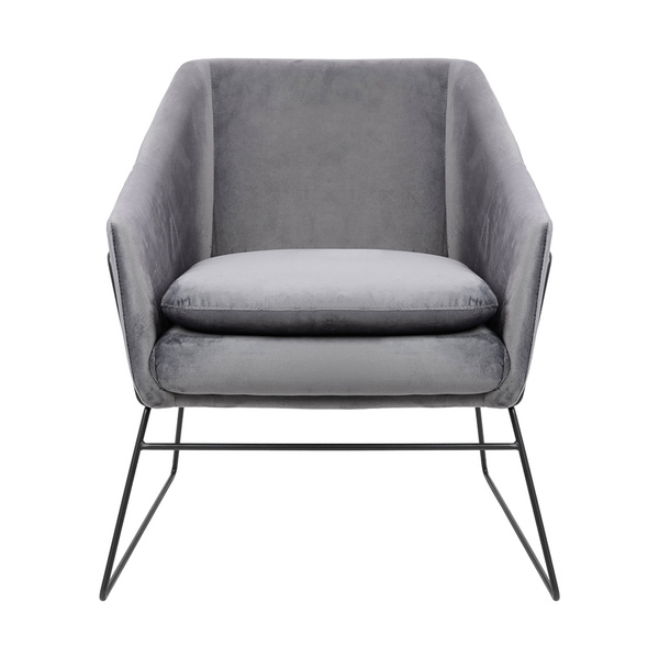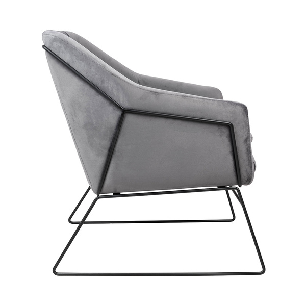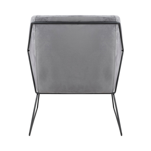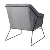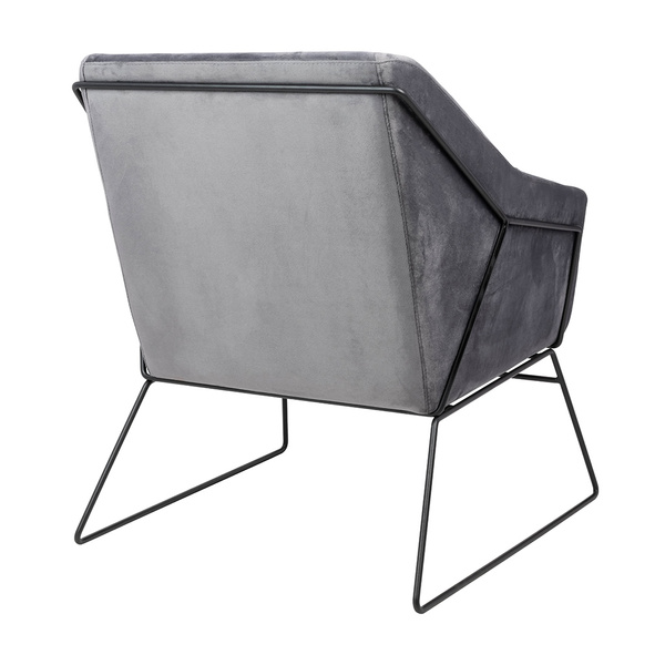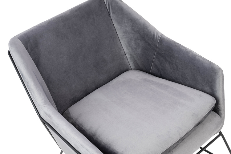 Siedzisko oraz poduszka tapicerowane są aksamitnym welurem w ciemnoszarym kolorze.