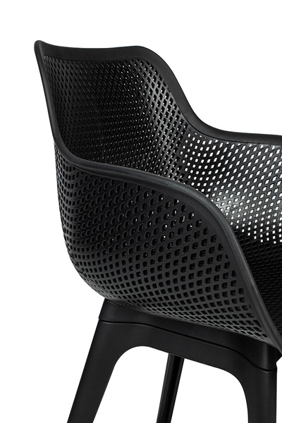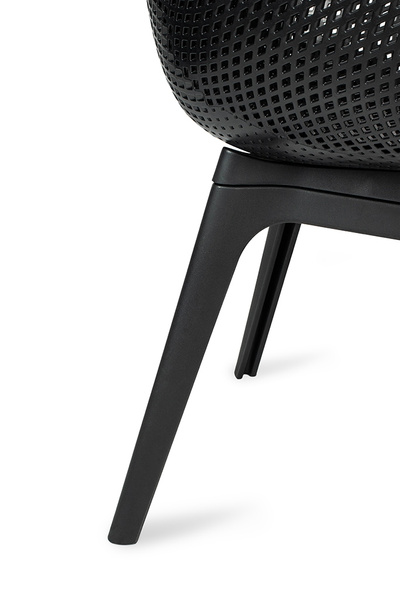 Ażurowe siedzisko dodaje subtelności oraz współczesnego wyglądu, dzięki czemu doskonale wpisuje się w różnorodne aranżacje.