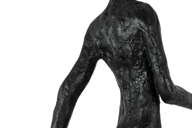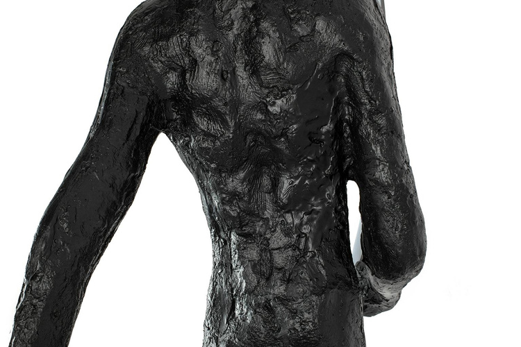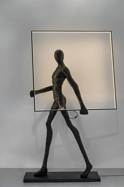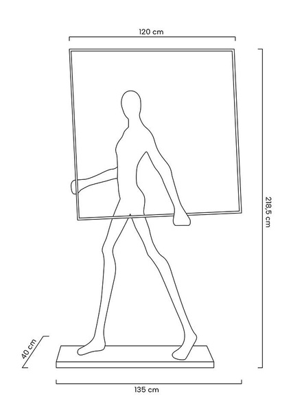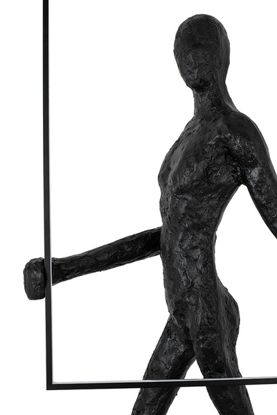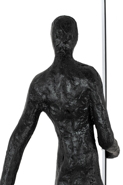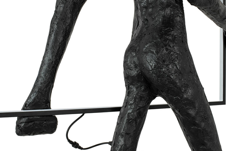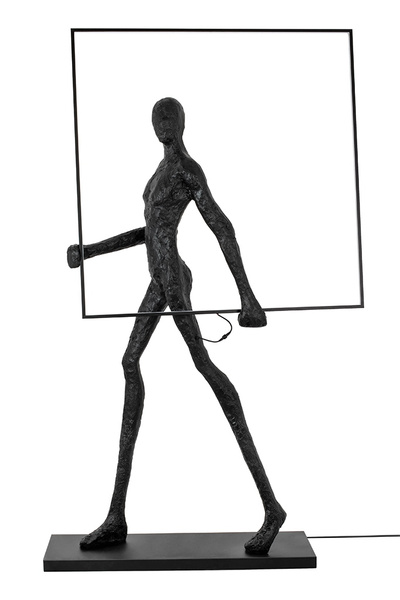 Wykonana z włókna szklanego, stali oraz aluminium. Czarny kolor oraz nietypowy motyw sylwetki człowieka tworzy minimalistyczną