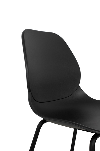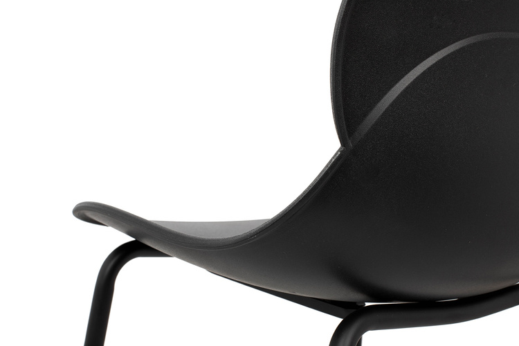Profilowane siedzisko z trwałego polipropylenu w kolorze czarnym gwarantuje komfort oraz łatwość w utrzymaniu czystości.