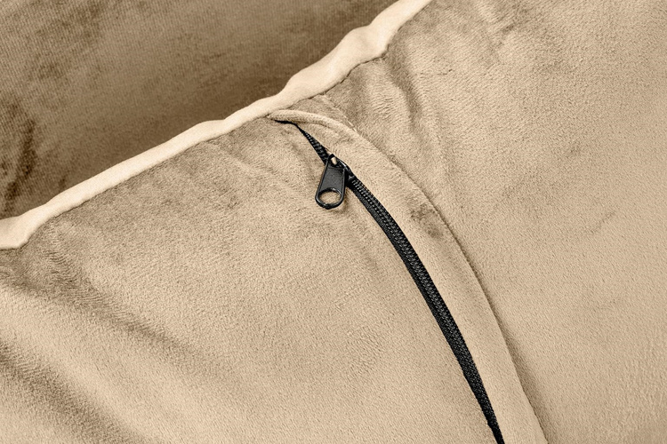 Siedzisko oraz poduszka tapicerowane są aksamitnym welurem w kolorze khaki.