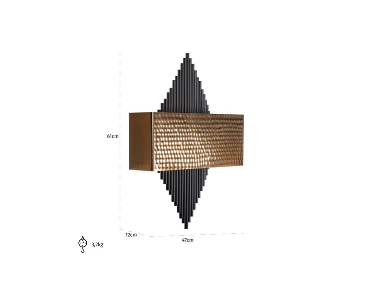 RICHMOND lampa ścienna LOUA jest ciekawym i nietuzinkowym projektem. Oprawa wykonana ze stali w nowoczesnym, modernistycznym stylu zachwyci nie tylko miłośnika designu. Loua oprócz praktycznego zastosowania, wizualnie wzbogaci każdą aranżację. Światło: E27 max.40 W (brak w zestawie) Oprawa: wys. 61 cm / szer. 47 cm / gł. 12 cm Montaż: instalacja ścienna Waga: 3,2 kg.