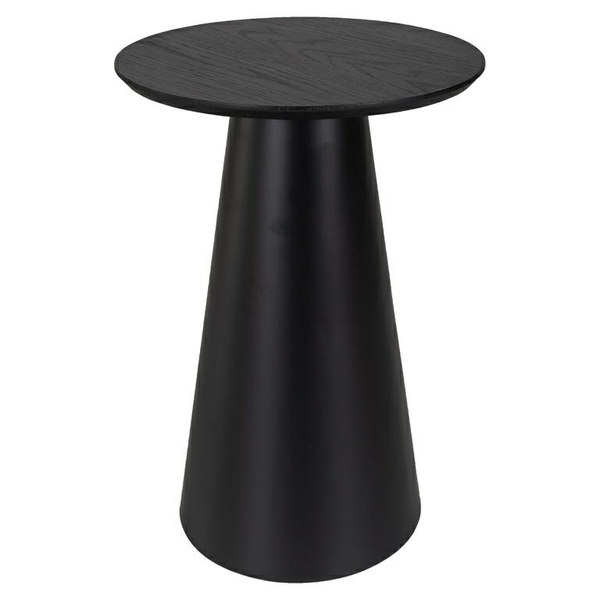Czarna podstawa o kształcie stożku opiera się na solidnym metalu.