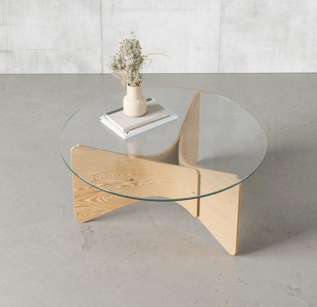 Elegancki i nowoczesny stolik kawowy wykonany w 80% z odnawialnego drewna jesionowego z dodatkiem drewna eukaliptusowego.