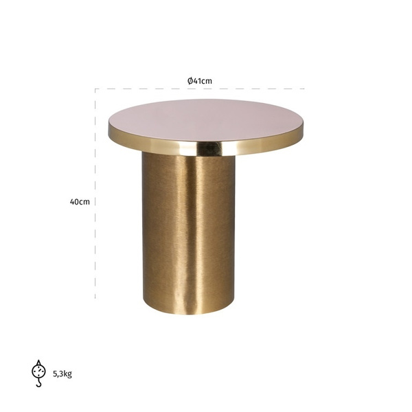 Całość wykonano z metalu oraz wykończono w szczotkowanym złocie i delikatnym różu.
