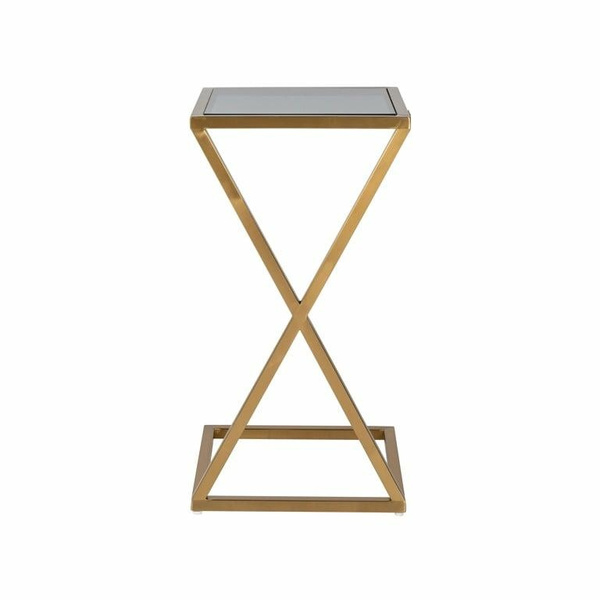 RICHMOND stolik PARAMOUNT złoty. Elegancki, designerski produkt wpisujący się w nowoczesne trendy. Ciemny szklany blat w połączeniu z podstawą w odcieniu szczotkowanego złota idealnie odnajdzie się w stylu Glamour. Swoim ciekawym kształtem, w którym ukryta jest rzymska dziesiątka, zwraca uwagę każdego miłośnika designu, jednocześnie zdobiąc przestrzeń. Dostępna również srebrna wersja. Wymiary: wys. 66 cm / szer. 35 cm / gł. 35 cm Waga netto: 4,5 kg.