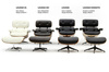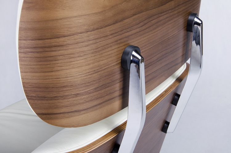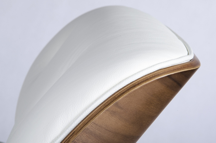 Cały fotel wraz z podnóżkiem tapicerowane są naturalną włoską skórą w kolorze białym. Zarówno korpus fotela jak i podnóżka został wykonany