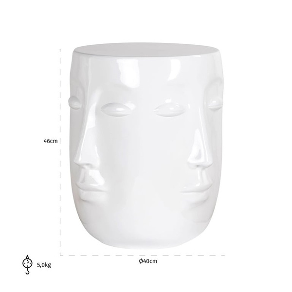 RICHMOND stolik CHRISTY biały. Oryginalny design połączono ze współczesnym stylem. Całość wykonano z żywicy w białym kolorze. Ukazana podobizna twarzy pełni główną ozdobę. Christy to idealny produkt dla tych, którzy cenią sobie artystyczną estetykę. Dostępna także złota wersja. Wymiary: wys. 46 cm / szer. 40 cm / gł. 40 cm Waga netto: 5 kg.