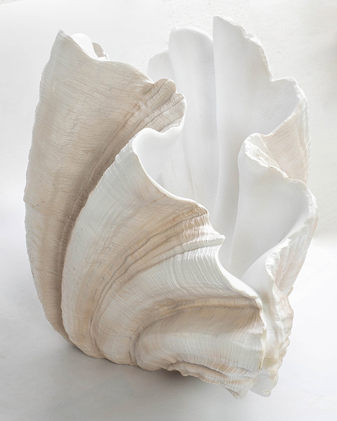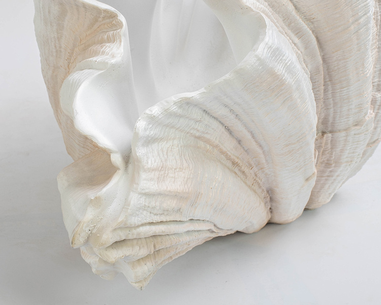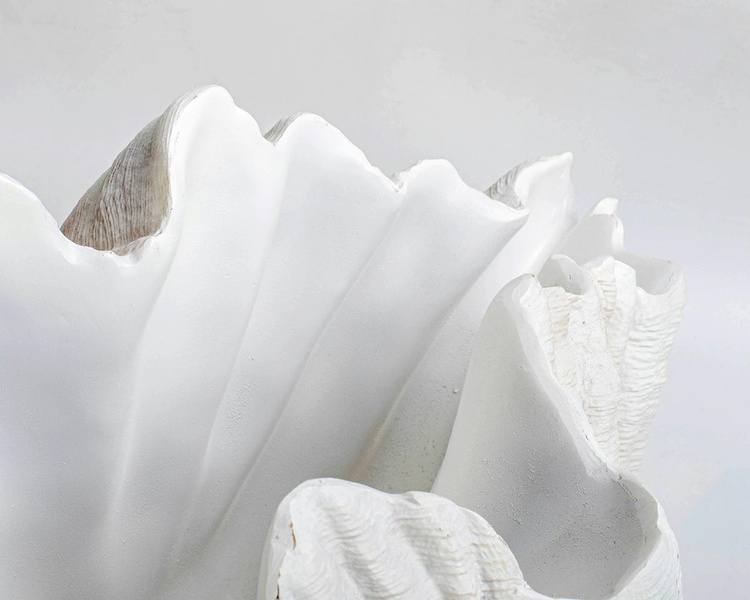 Ten designerski wazon przypomina piękną muszlę.