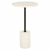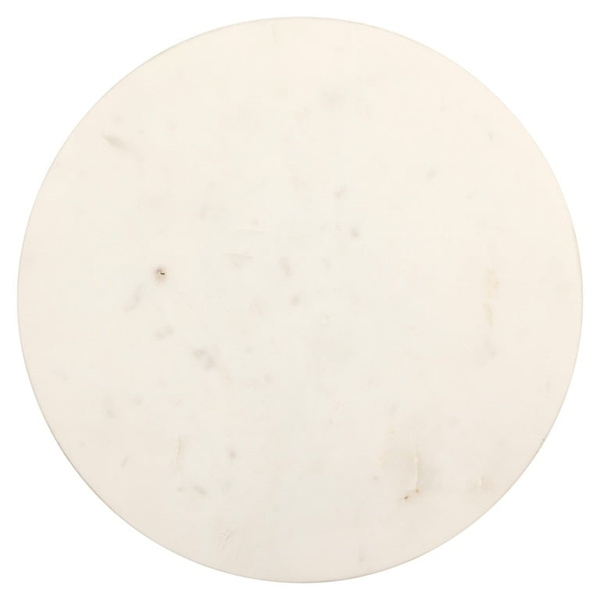 Okrągły blat zdobi piękny marmur w jasnej tonacji.