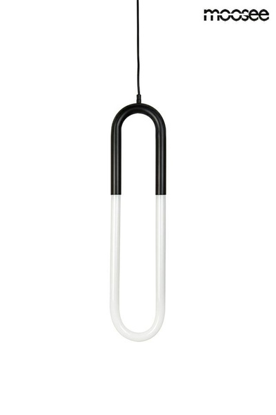 MOOSEE lampa wisząca PUZO S czarna. Prosta, a zarazem nowoczesna konstrukcja kształtem przypominająca spinacz. Górna część oraz podsufitka wykonane są z metalu w czarnym kolorze. Dolną częścią jest szklany klosz, który skrywa ledowe źródło światła. Światło: LED 6 W / 480 lm / 3000 K Oprawa: wys. 260 cm / szer. 13,5 cm / gł. 13 cm Klosz: wys. 60 cm / szer. 13,5 cm / gł. 3 cm Mocowanie: śr. 13 cm / wys. 6 cm Przewód: 200 cm Montaż: instalacja sufitowa Waga netto: 1 kg Wymiary opakowania: 88,5 cm / 21 cm / 10 cm.