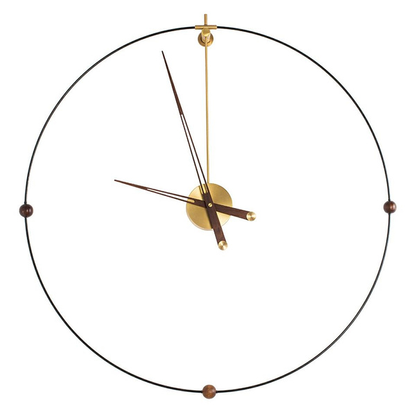 Czarną obręcz wykonano ze stali, a drewniane wskazówki oraz mosiężne elementy nadają zegarowi wyjątkowego charakteru w stylu Art Deco.