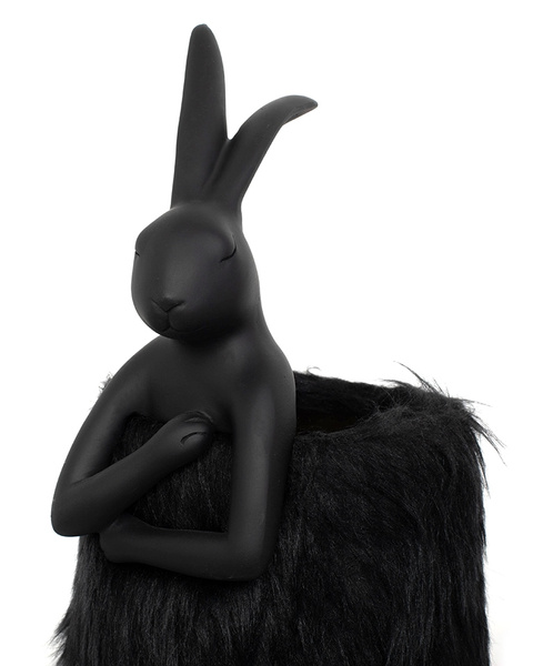 Przedstawia czarnego, ręcznie rzeźbionego królika wykonanego z trwałej żywicy, co nadaje solidności i wyrafinowanego charakteru.