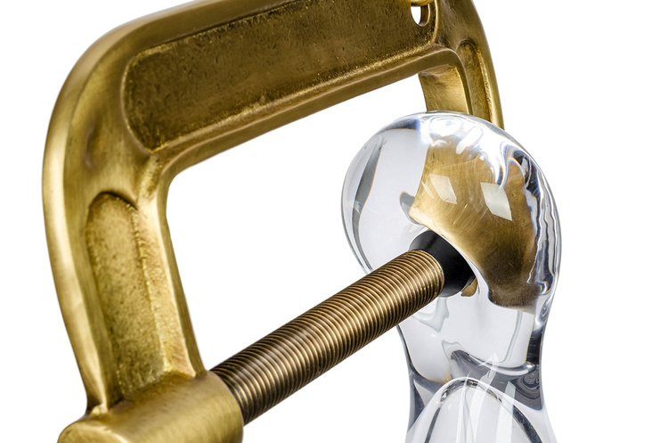 Szklany klosz jest w finezyjny sposób podtrzymywany przez metalowy zacisk.